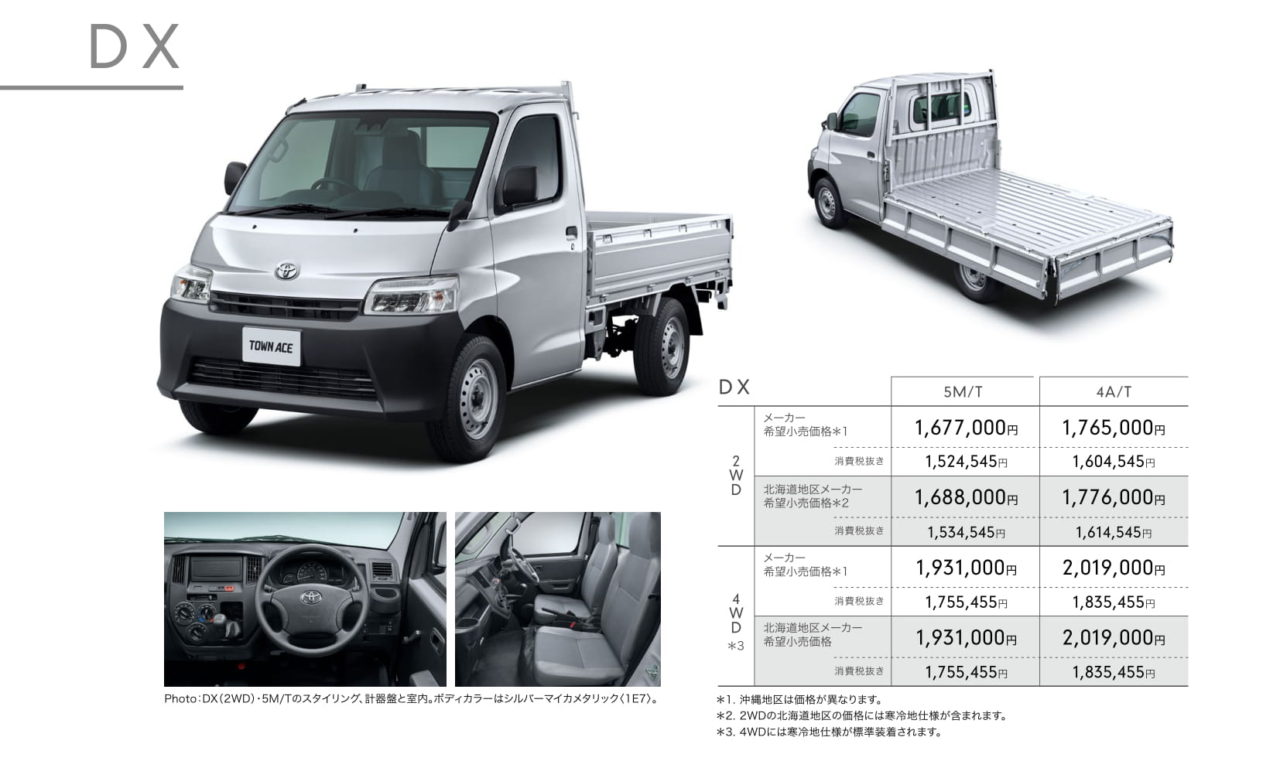 Selain itu ada perbedaan penamaan di varian truck atau pikapnya yaitu DX "X Edition" untuk Town Ace, sedangkan Gran Max bernama GL. Untuk kelengkapannya baik Gran Max maupun Town Ace sama, begitu juga harganya yang artinya perbedaan Gran Max dan Town Ace sebatas emblem kebenarannya hanya sampai di varian tertinggi Town Ace.