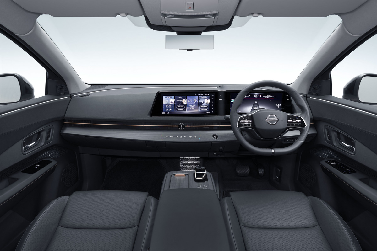 Interior dirancang dengan cara paling efisien dan nyaman berdasarkan istilah Jepang "ma" yang mengacu pada bukaan spatiotemporal dengan dukungan platform EV terbaru. Komponen powertrain yang kompak dari platform EV terbaru Nissan menjadi keunggulan karena membuat lantai menjadi rata dan itu awal dari kabin terlega di kelasnya.