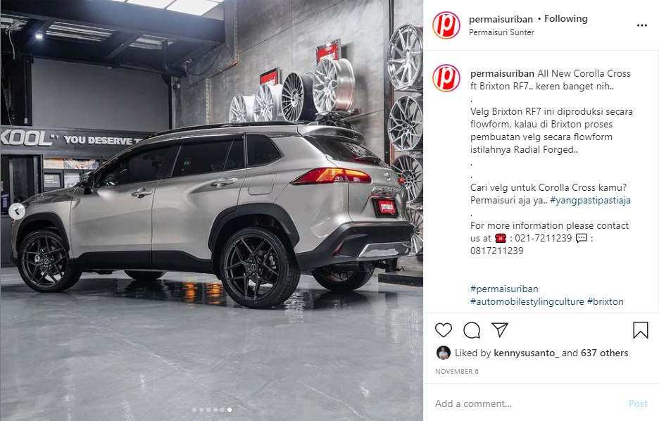 SoundandMachine (Jakarta), 29 November 2020 - Gerai pelek Permaisuri menawarkan pelek aftermarket untuk semua varian SUV kompak Toyota yaitu Toyota Corolla Cross.