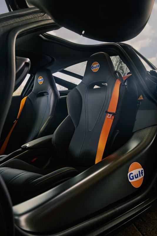 Membuatnya makin spesial, corak biru dan oranye ikonik itu disediakan secara khusus oleh produsen car AkzoNobel. Selain merayakan kemitraan antara McLaren dan Gulf Oil, mobil edisi khusus itu juga sebagai penghormatan kepada mobil balap McLaren F1 GTR legendaris yang mengenakan livery serupa.