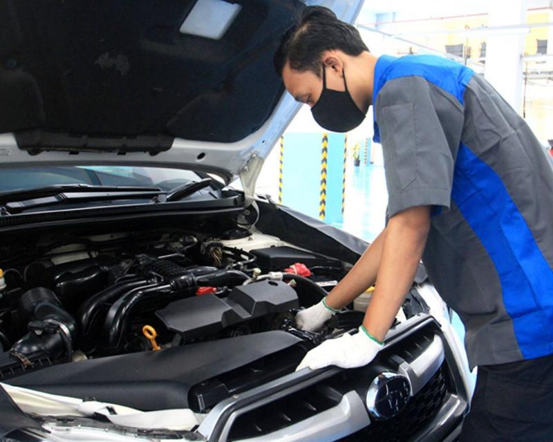 Berhubung masih pandemi Covid-19, semua aktifitas servis Subaru mengikuti protokol kesehatan seperti wajib memakai masker, disinfektan, mencuci tangan, dan sebagainya.