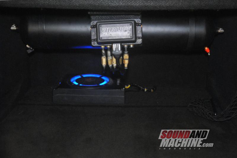 Untuk membuatnya lebih ceper seperti ini, Kiki memakai air-suspension buatan Air Lift Performance dari YM Autowheels dan kompresor ganda Air BFT dari Air BFT Indonesia.