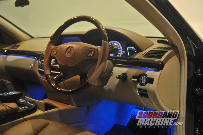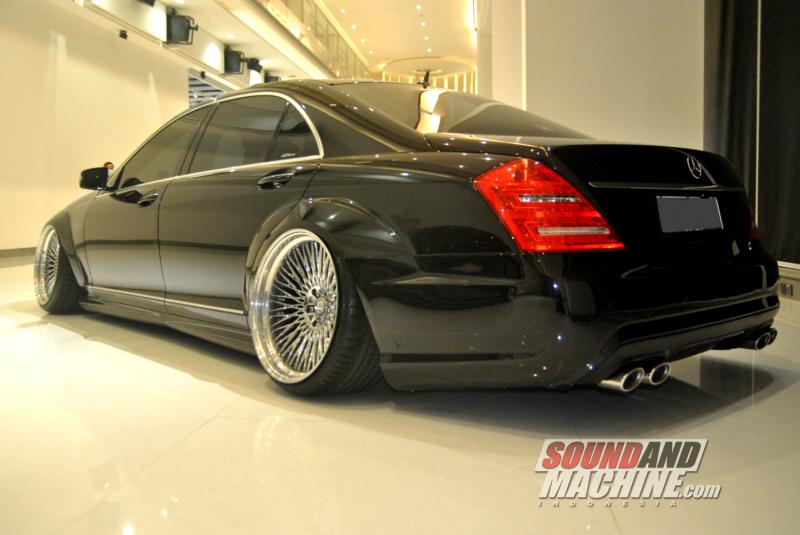 Pertama, S-Class tersebut diperbarui tampilannya dengan memakai lampu dan spion W221 facelift, bodykit Mercedes-Benz S65 AMG dari Inspire Tuning, Joglo, Jakarta.