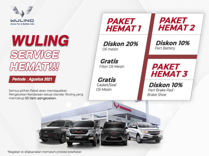 "Kami terus berupaya untuk menghadirkan beragam inovasi layanan bagi para konsumen yang kini kami wujudkan melalui Wuling Service Hemat. Melalui program ini, pelanggan bisa mendapatkan program menarik untuk servis atau perawatan kendaraan, di jaringan dealer resmi Wuling selama bulan ini," kata Taufik.