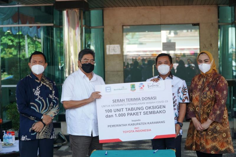 Bantuan Toyota Indonesia disalurkan dengan menggandeng Yayasan Benih Baik. Tabung oksigen yang didonasikan akan disalurkan Pemkab Karawang langsung kepada Rumah Sakit rujukan pasien Covid-19 yang tersebar di wilayah Karawang guna membantu fasilitas kesehatan dan tim medis.