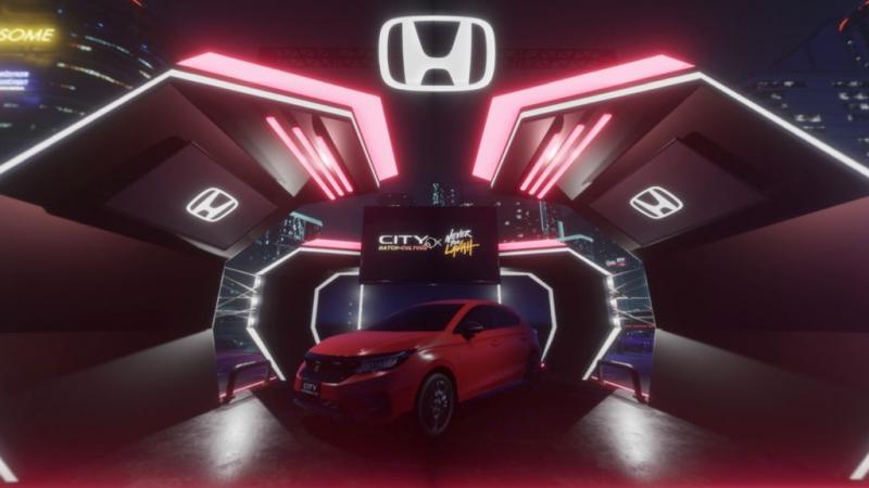 Booth Honda yang ditampilkan secara virtual menampilkan desain khas Honda yang unik, sporty dan stylish dengan beberapa aksen lampu neon di sekitarnya yang menampilkan Honda City Hatchback RS.