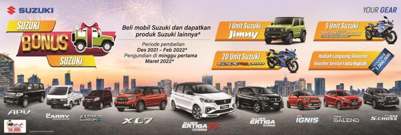 Ia menambahkan, promo Suzuki Bonus Suzuki ini dihadirkan dengan harapan dapat menambah kebahagiaan konsumen di tahun yang baru. Promo Suzuki Bonus Suzuki ini berlaku dari 1 Desember 2021 hingga 28 Februari 2022.