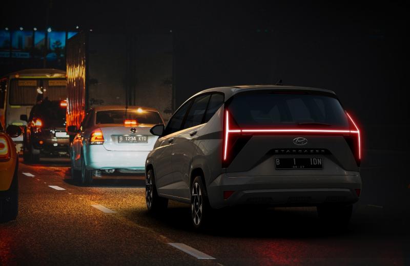 Pada bagian belakang, MPV ini juga terpasang Distinctive H Rear Lamp menjadi identitas bahwa Stargazer merupakan produk dari Hyundai, meski tampak dari kejauhan.