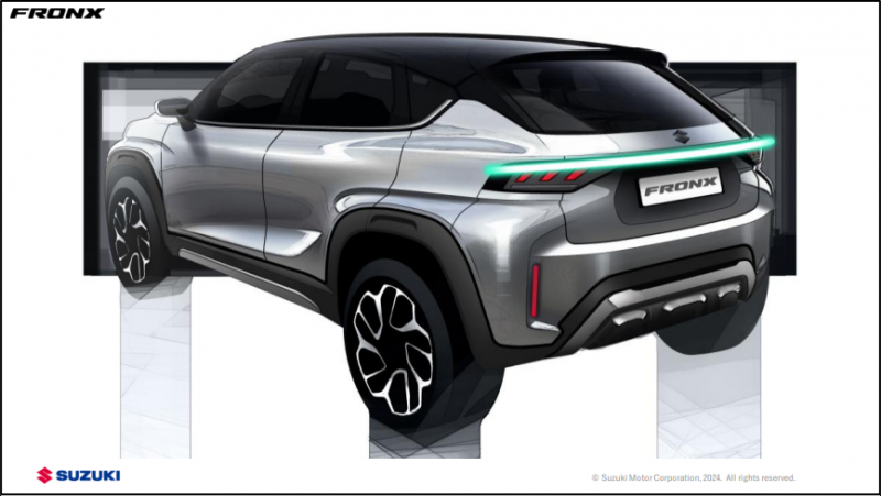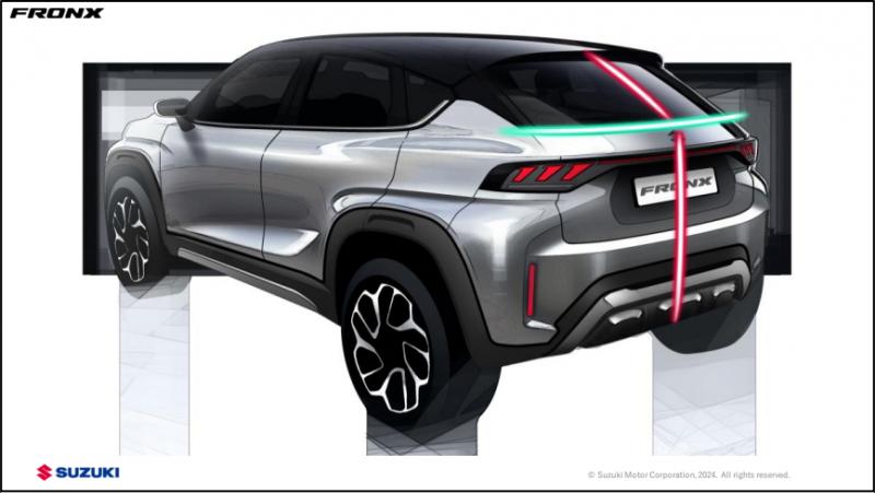 Tampilan ala coupe Fronx dipercantik dengan desain lampu belakang yang menonjol dari bodi sempit tanpa mengurangi kesan lebar, sertta membuat cahaya lampu belakang tampak tajam dalam satu garis horizontal, tanpa interupsi di bagian tengah bodi.