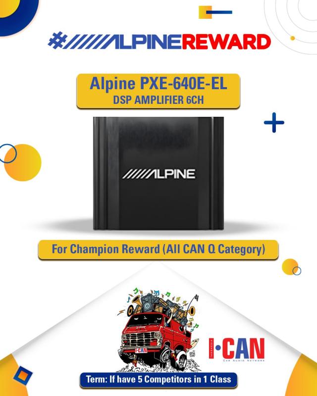 "Untuk seri yang baru, ICAN mendapat support dari brand Alpine, setiap kelas di CAN Q apabila terdapat kuota 5 mobil peserta akan mendapatkan hadiah Alpine EL DSP dan 8 peserta mendapatkan hadiah Alpine UTS A100. Program ini bertajuk #AlpineReward," kata Ibnu Haldun, President I-CAN dalam wawancaranya dengan Soundandmachine (06/25).