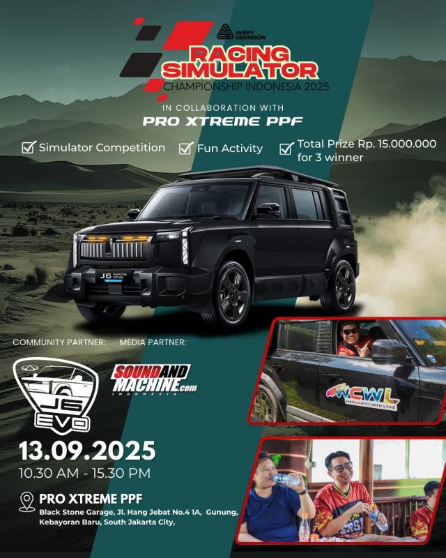 Soundandmachine.com (Jakarta) - Gelaran Avery Dennison Racing Simulator Champhionship Indonesia yang berlangsung pada 13 September 2025 mendatang di Pro Xtreme PPF, Black Stone Garage Jakarta, menghadirkan kolaborasi unik antar dunia otomotif, termasuk dunia car audio.