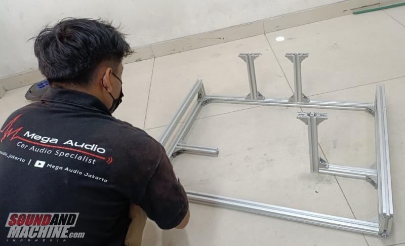 Jika sebelumnya instalasi sistem audio custom umumnya menggunakan rangka berbahan kayu MDF, kini banyak installer mulai beralih ke aluminium karena lebih ringan, kuat dan rigid, serta memiliki tampilan yang lebih modern dan rapi.