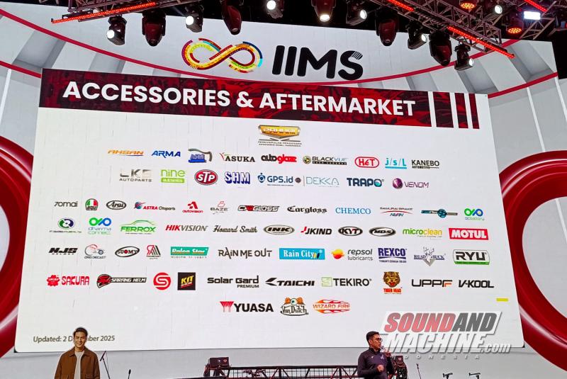 Industri pendukung juga akan turut meramaikan IIMS 2026, dan untuk saat ini sudah ada lebih dari 60 brand, termasuk yang menjadi salah satu sponsor utama, yaitu Bridgestone, HSR Wheels, dan Alpinestars.