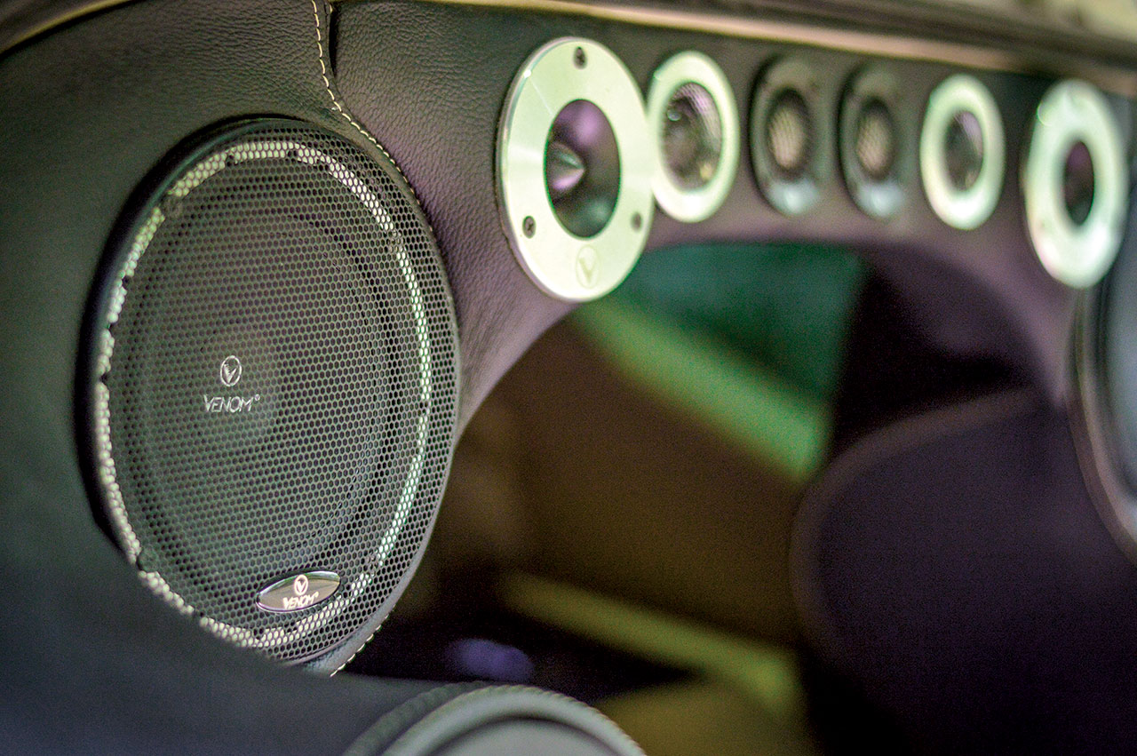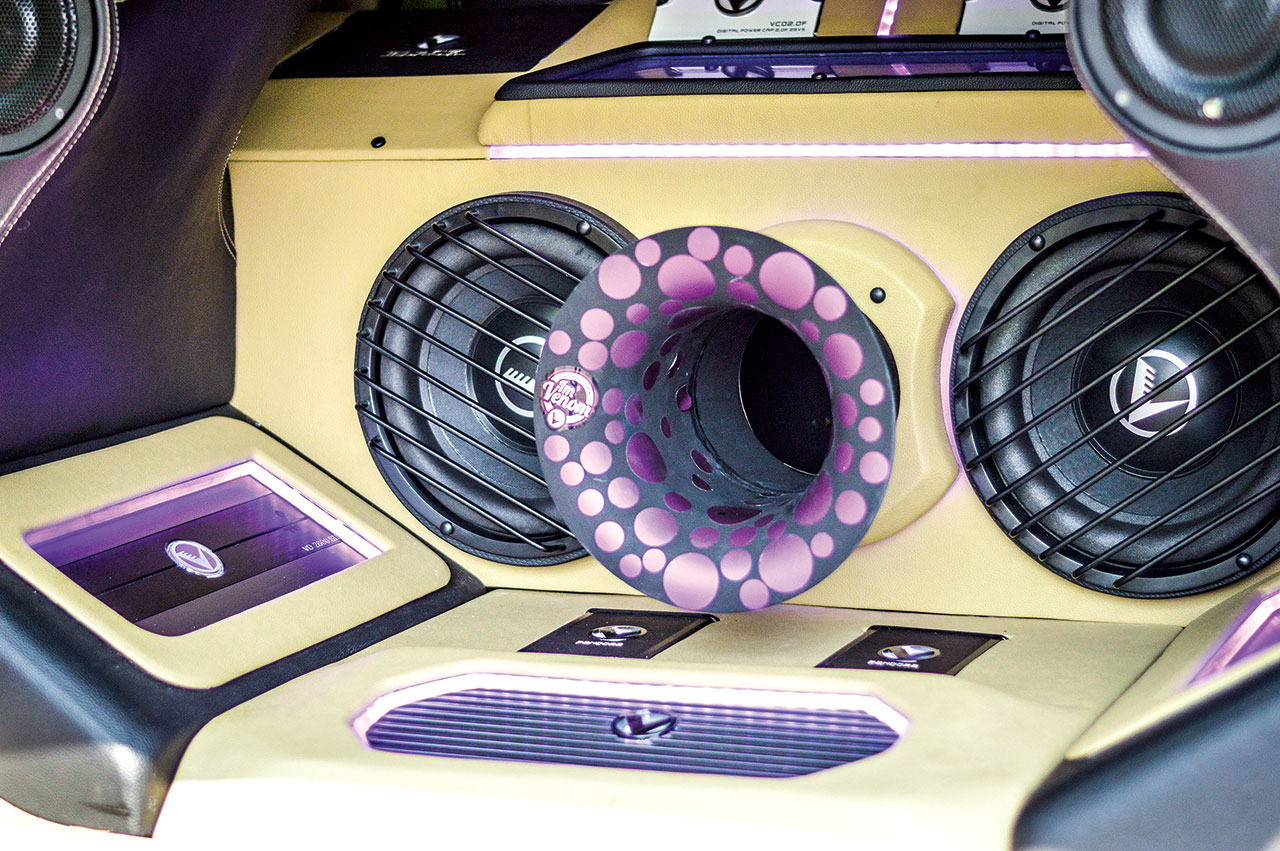 Sedangkan untuk speaker belakang kami menggunakan Venom Intelligent VI 2.5 CT, Venom VX 6 SII, Venom VX 4HT Horn, dan Venom Intelligent VI 6.3 SII dengan komposisi ditambah dua set tweeter dan satu set horn tweeter untuk membantu supaya suara high-nya bisa lebih live, ungkap pengalaman Tonny intaller dengan perawakan humoris.