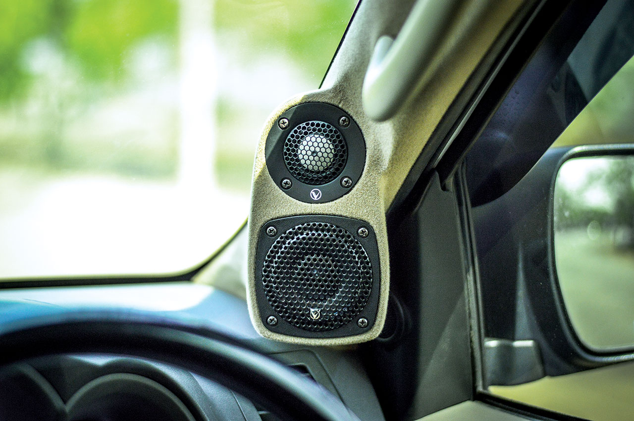 Pilar custom kami menggunakan bahan dakron, sehingga driver yang bercokol di atas dasboard memiliki ruangan yang besar. Sedangkan midbass di pintu kami bubuhkan peredam agar pintu bisa menyerupai boks serta mengurangi kebocoran suara dari banyaknya rongga udara di pintu, imbuh Tonny.