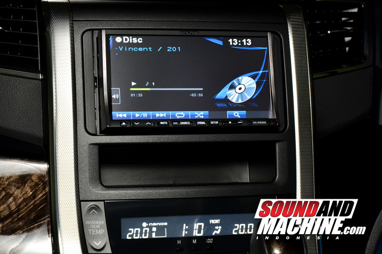 Full Aktif Tuning Via ProcessorMengusung sistem SQ full aktif, sudah sepatutnya sistem memerlukan keberadaan perangkat processor audio mobil untuk melakukan tuning frekuensi yang sempurna. Untuk sistem di MPV yang sudah menggunakan head unit Alpine IVA-W520E ini, Hong memakai Alpine PXA-H800 sebagai processornya.