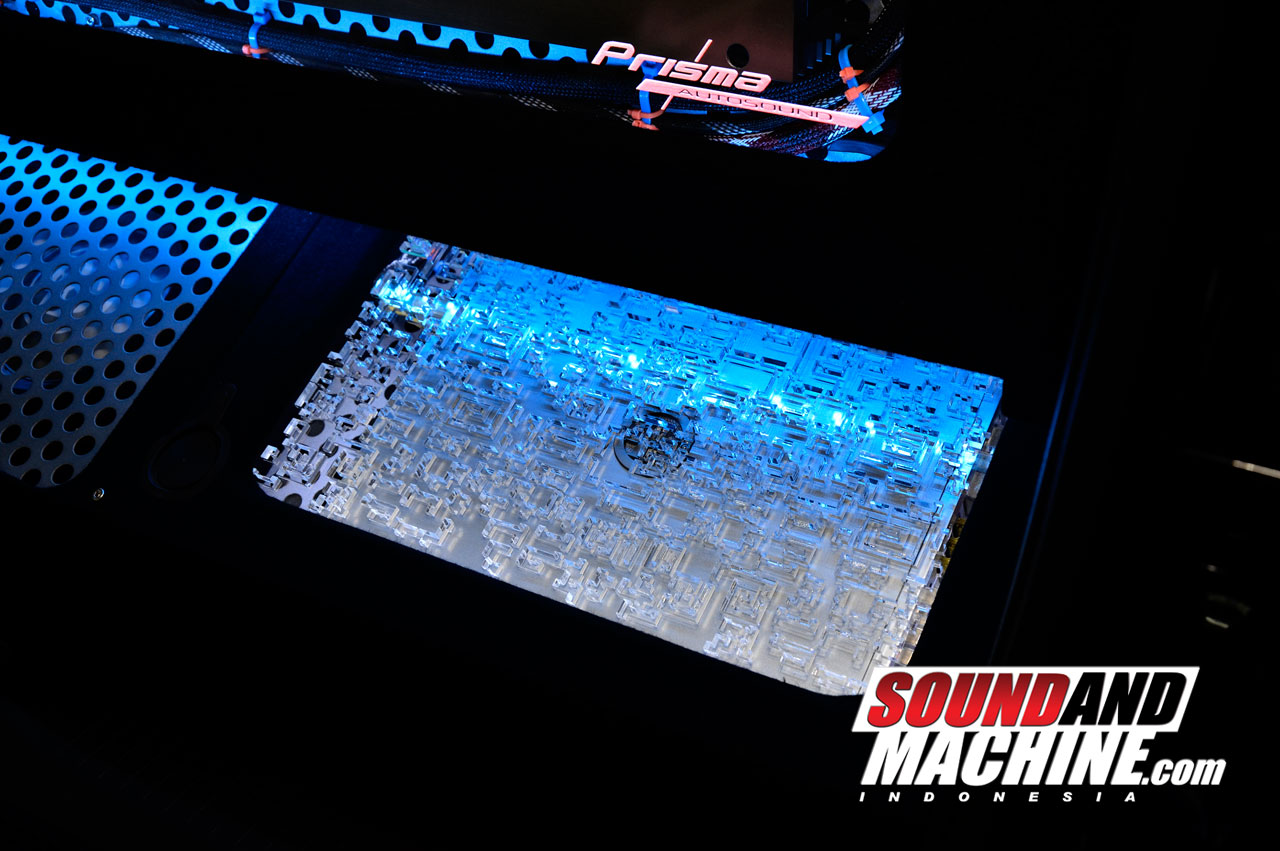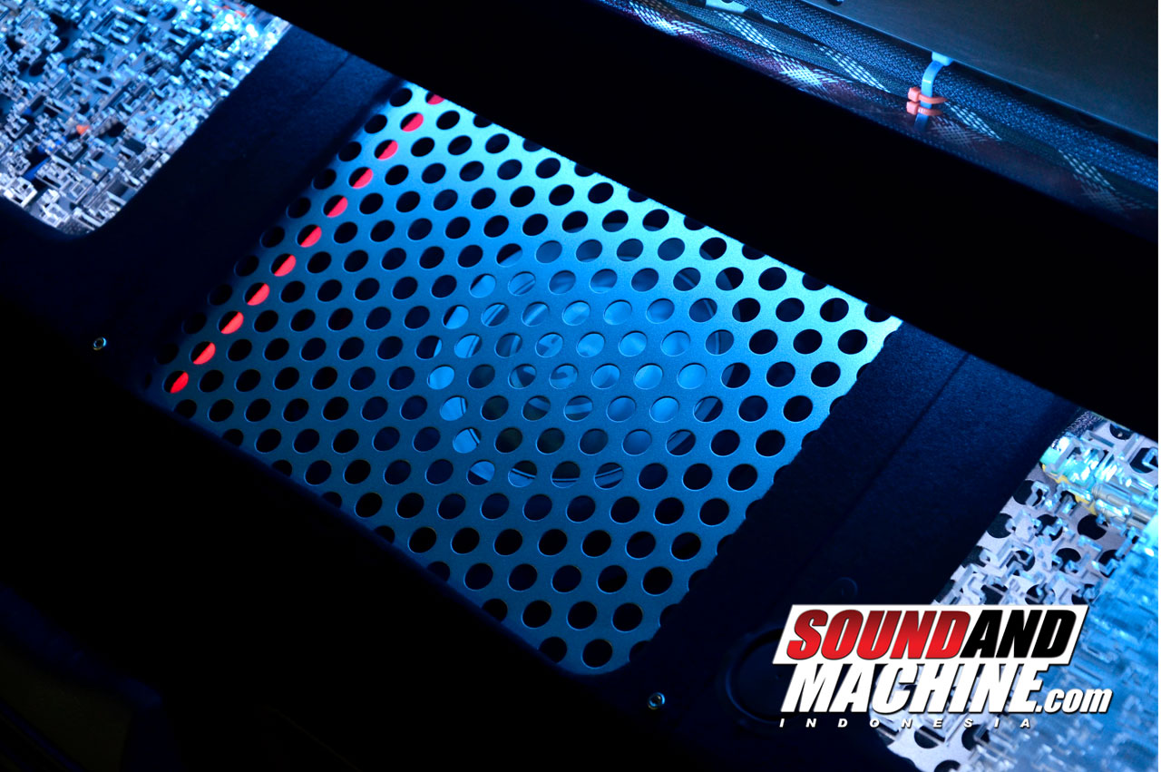 Sebagai treatment sekaligus mounting yang lebih rigid untuk tweeter dan midrange, digunakan mounting custom berbahan Alumunium CNC. Efek ke tampilan pun membuat speaker terlihat lebih mewah didalam kabin tengah. Untuk midbassnya, dipintu tengah di posisi standar tapi gak dibobok, pungkasnya.