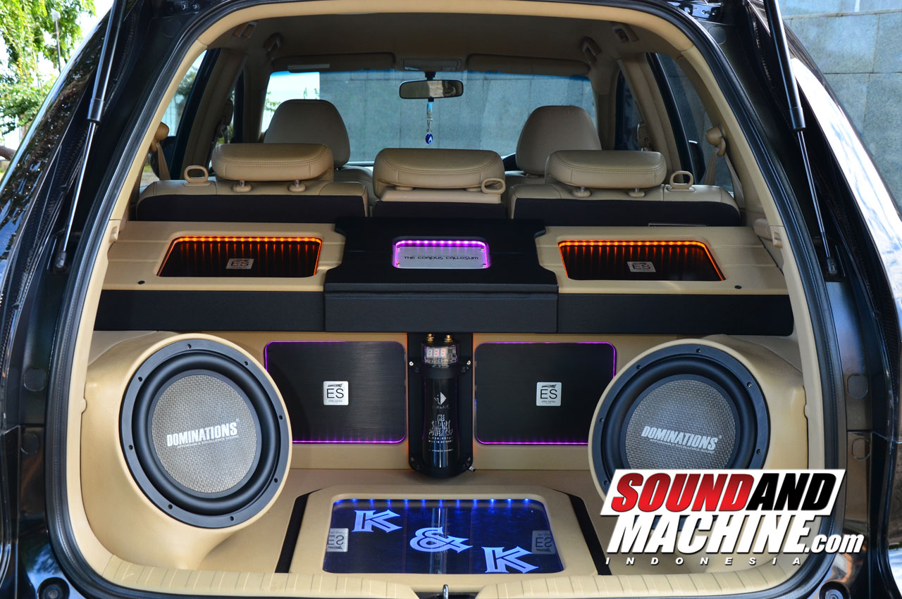Untuk mendapatkan suara bass yang powerful dan mumpuni di frekuensi rendah untuk musik audiophile, dalam mobil milik Syafril ini sudah diaktifkan 2 unit subwoofer 12 inci di ruang bagasi. Dengan menggunakan box sealed berukuran 1.4 kubik, subwoofer Dominations ES ZB terpasang sempurna dan siap bekerja optimal, terlebih masing-masing subwoofer sudah digandengkan 1 unit amplifier monoblock ES 1800 juga dari labelan yang sama.