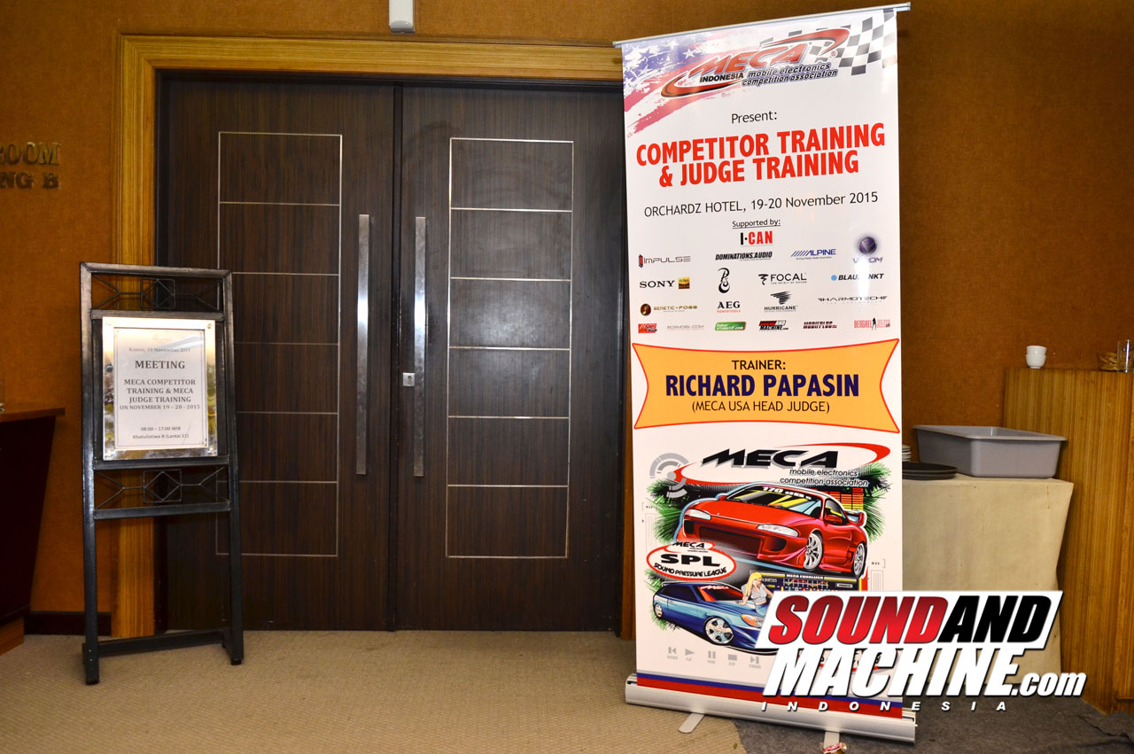 Dalam gelaran Competitor and Judge Training tersebut dihadirkan langsung trainer dari MECA USA, yaitu Richard Papasin yang menjabat sebagai ketua juri di USA yang didampingi Wahyu Tanuwidjaja, CEO PT Audioworkshop.Tujuan gelaran ini tentunya untuk mensosialisasikan regulasi MECA lebih mendalam kepada calon peserta kontes dan sekaligus untuk memberi pelatihan langsung bagi peserta yang tertarik untuk menjadi dan mendapatkan lisensi resmi sebagai juri MECA, terang Ibnu, yang resmi ditunjuk sebagai President MECA Indonesia.