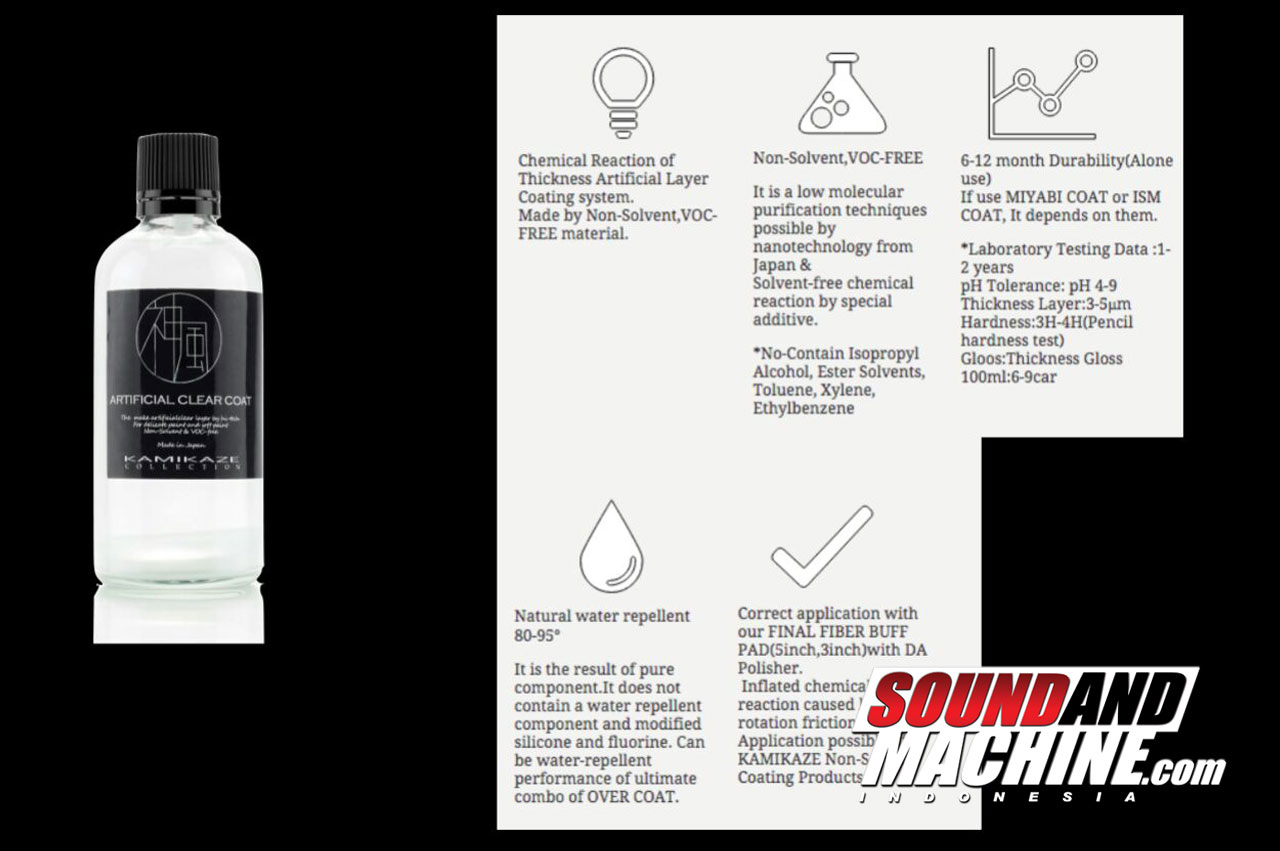 Durability dari cairan ini bisa bertahan hingga 1 tahun, namun jika ingin durabilitynya bisa ditambahkan lebih lama lagi tambahan juga lapisan Glass Coating dari merk Kamikaze tentunya sehingga bisa menghasilkan kilap mobil dan durability hingga 2 tahun. - Soundandmachine.com